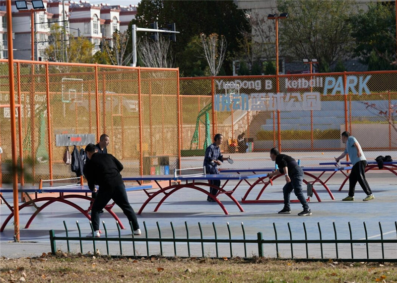 11月10日,附近居民在悦动公园打乒乓球。徐少立摄