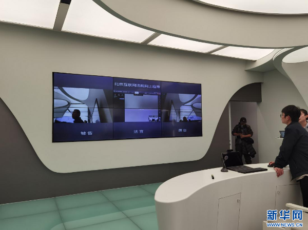 北京互联网法院网上庭审场景。新华网 卢俊宇/摄