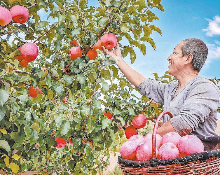 如今却铺展出梯田叠翠、苹果挂枝、