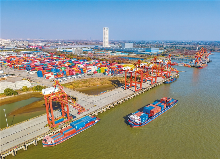 图为12月8日拍摄的江苏省扬州港(无人机照片)。新华社发(任飞 摄)