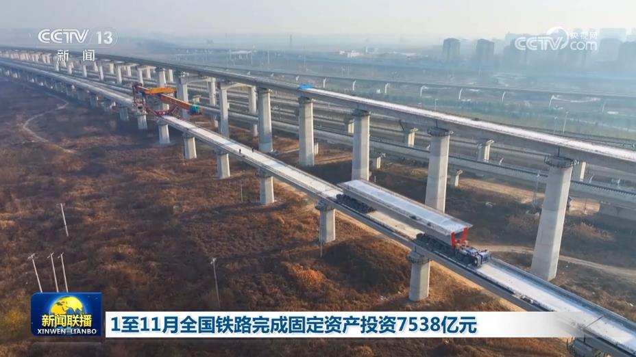 央视网消息(新闻联播):记者从国铁集团获悉,今年1至11月,全国铁路完成固定资产投资7538亿元,同比增长5.9%。