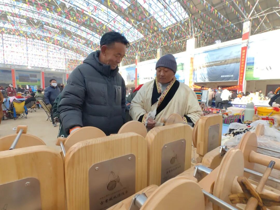 才旺秋培从小在牧区长大,祖辈都以放牧为生。从小跟着大人摆弄牧区生活用品的他,深知纺线的辛苦:“不管是织帐篷还是做卡垫,都需要先把牛毛、羊毛搓成线,绕成线团,费时又费力,效率还低。”