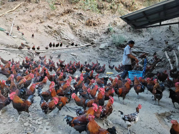 村合作社养殖的跑山鸡。