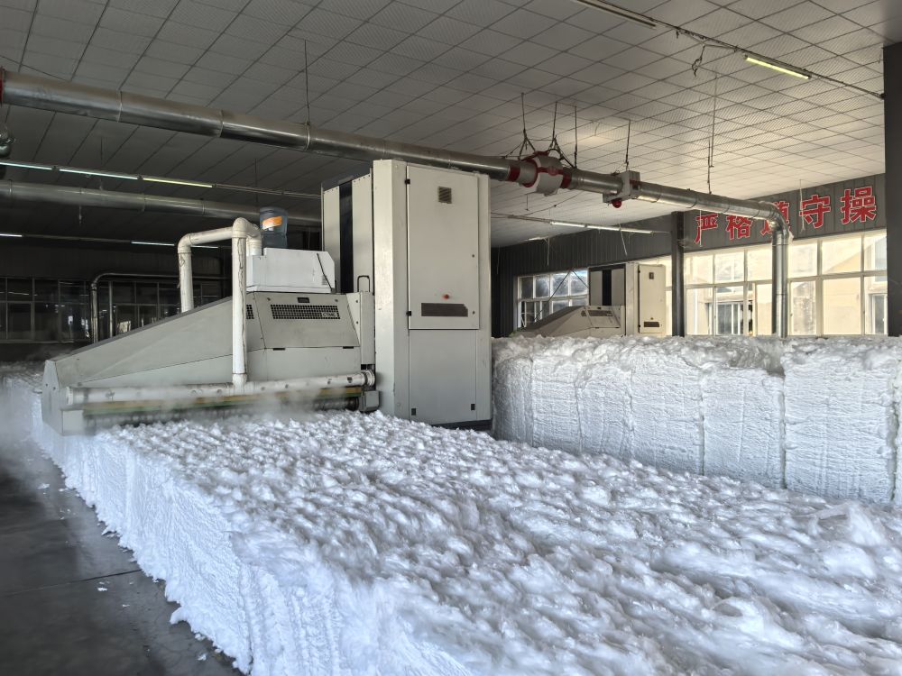 马口镇落后的生产模式逐渐成为“过去式”。今天,穿镇而过的105省道旁,纺织企业密集分布、绵延数里。随意走入一家企业,就能看见智能化生产场景:往复式抓棉机高效“吞吐”物料、空中流转系统平稳串联纺纱工序、数以万计的纱锭齐声飞旋,自动化生产线上,蓬松柔软的涤纶短纤历经多道工艺,最终变成一根根柔软又坚韧的缝纫线。