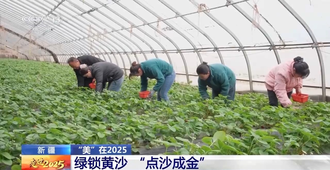 总台记者卜鹏:这里是位于塔克拉玛干沙漠边缘的新疆和田地区和田县万亩设施农业基地,一座座标准化的大棚整齐排列,现在正值大棚果蔬采摘的季节,当地依托现代化农业管理技术,让曾经的万亩沙海变成助农增收的绿色基地。