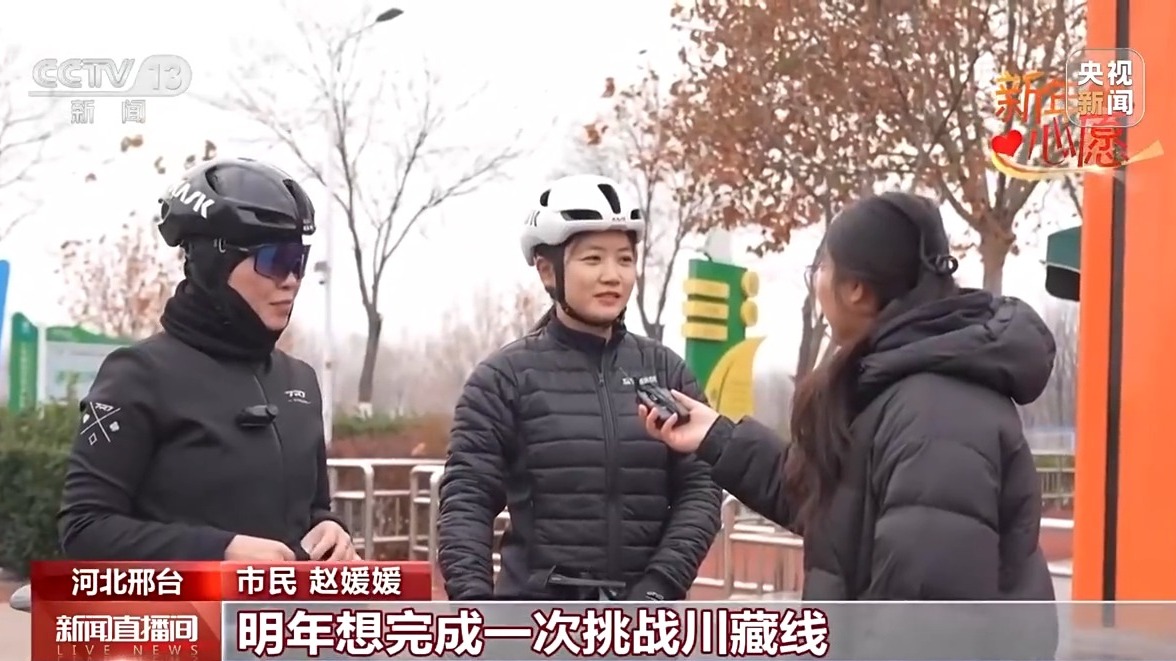 河北邢台 市民 赵媛媛:明年想完成一次挑战川藏线或者是环青海湖这种长途骑行。