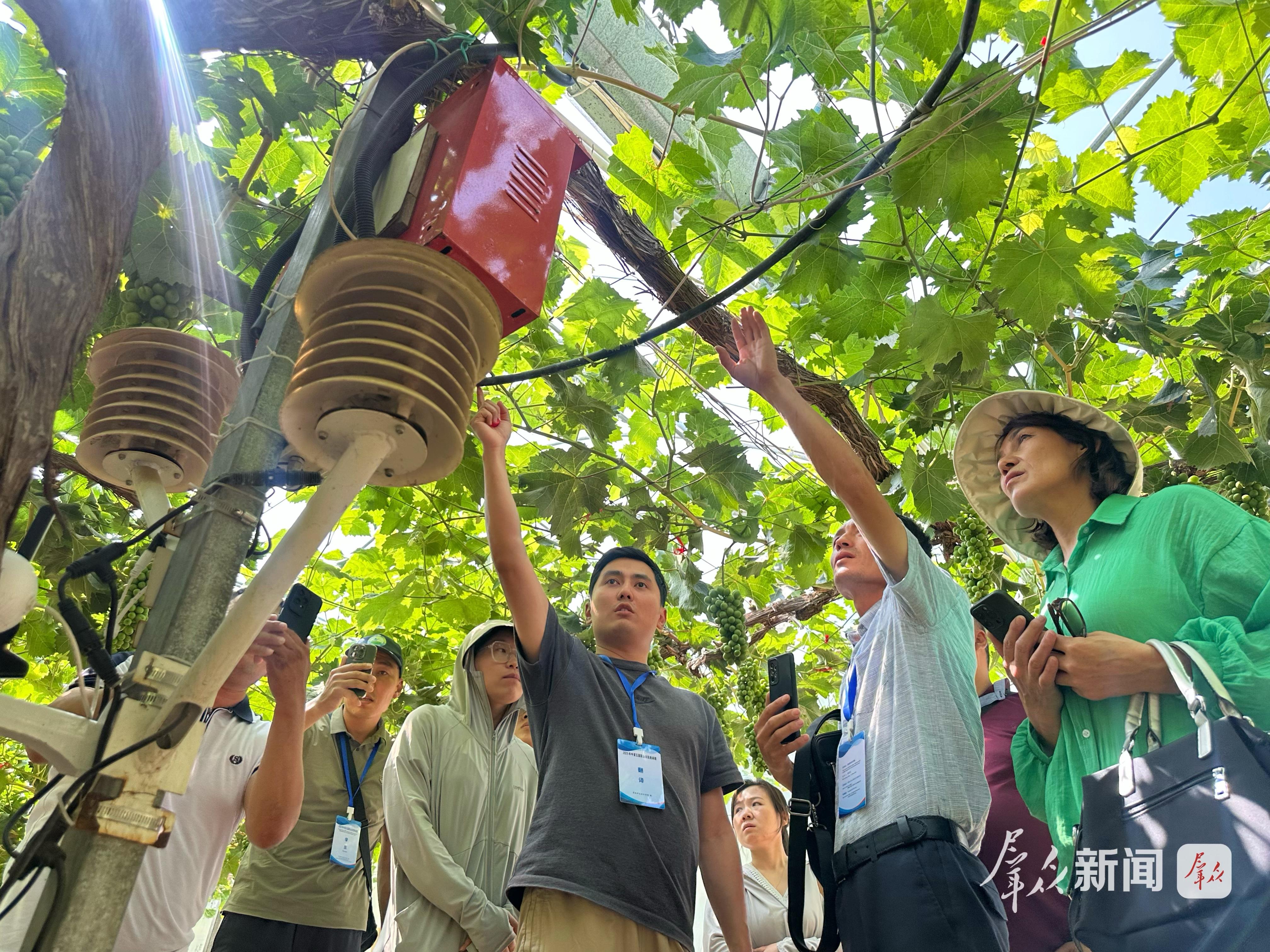 2025年6月15日,中亚五国职业农民培训班的学员在渭南葡萄产业园了解葡萄种植技术。群众新闻记者 陈宏江摄