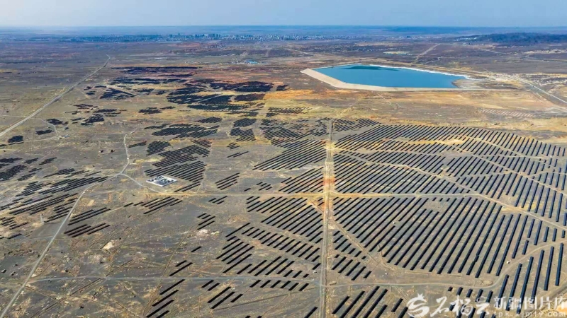 这是新疆油田正全力建设的新能源及配套煤电、碳捕集一体化项目中的400万千瓦光伏发电工程现场。项目计划铺设光伏板超800万块,总面积相当于13740个标准足球场。