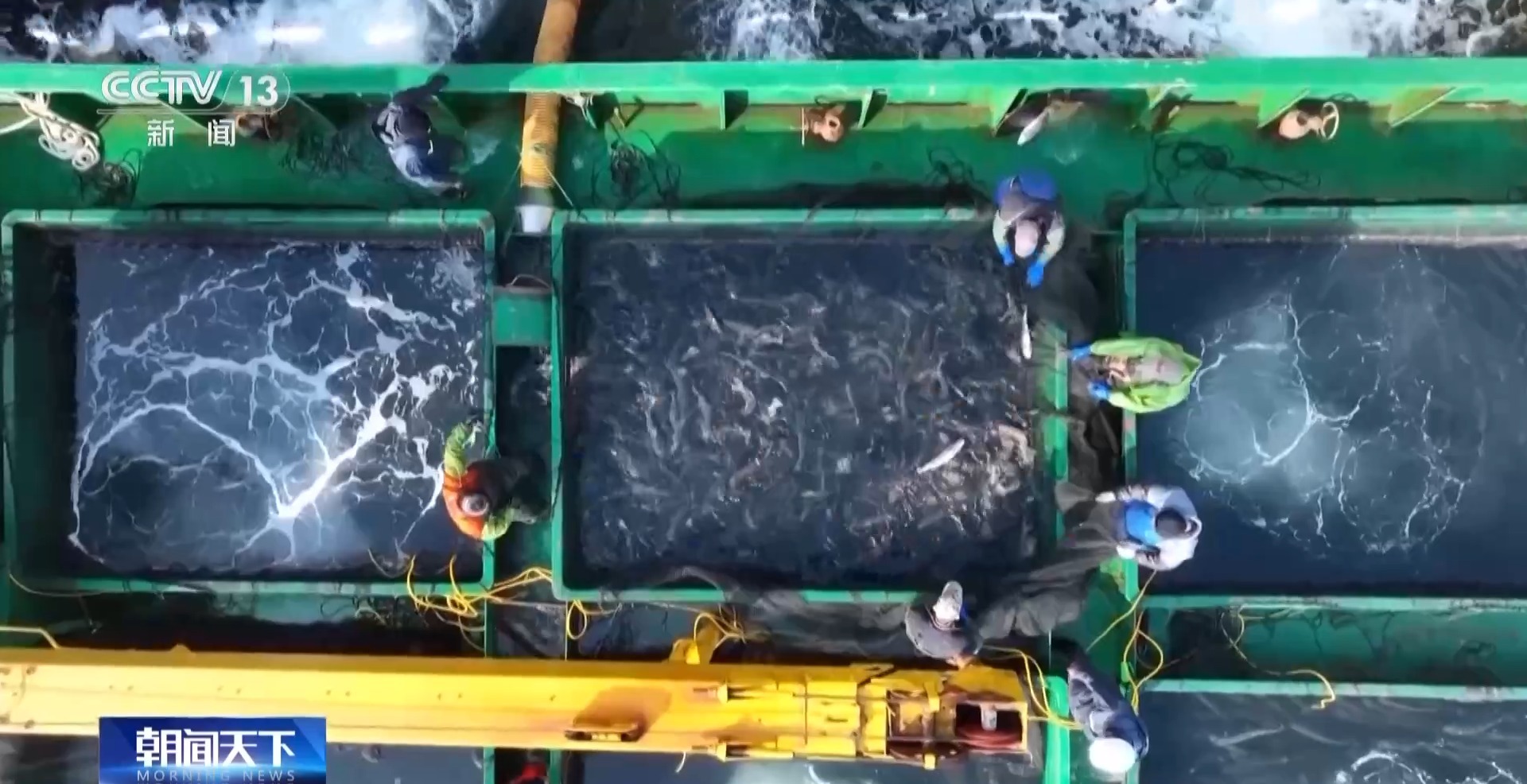 山东烟台经海渔业高级工程师 牛志兵:捞鱼包括点数清点这个环节,都是有各个分班的,有个组长协调,所有的环节我们都是衔接的,这样有利于保证鱼的健康,保证鱼苗在运输过程中有比较好的成活率。