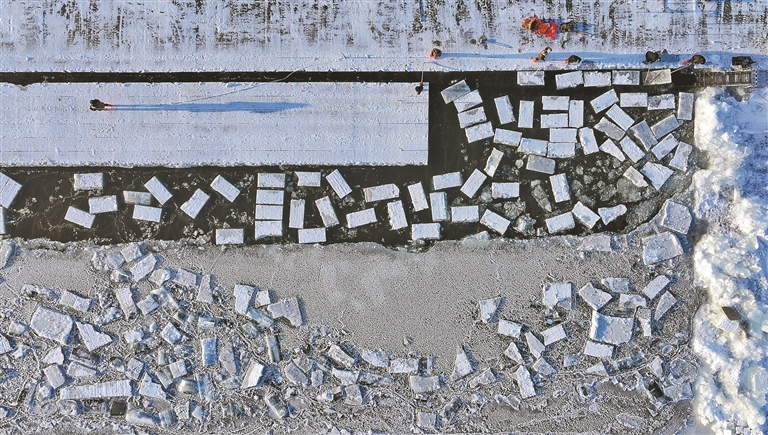 寒冬时节,第二十七届哈尔滨冰雪大世界正值迎客旺季。在距园区不远处的松花江哈尔滨段江面上,存冰开采工作已全面开启。哈尔滨冰雪大世界每年都会在采冰季挑选出一批冰块储存,采用传统储冰与现代多层保温技术相结合的方式,让冰块储存近一年时间不融化,供下一届冰雪大世界建设时使用。