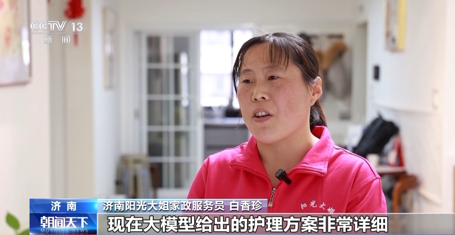 济南阳光大姐家政服务员 白香珍:现在大模型给出的护理方案非常详细,能够具体到哪天、哪个时段、做多久的推拿拔罐等等,我相当于有了一个聪明的“助手”。