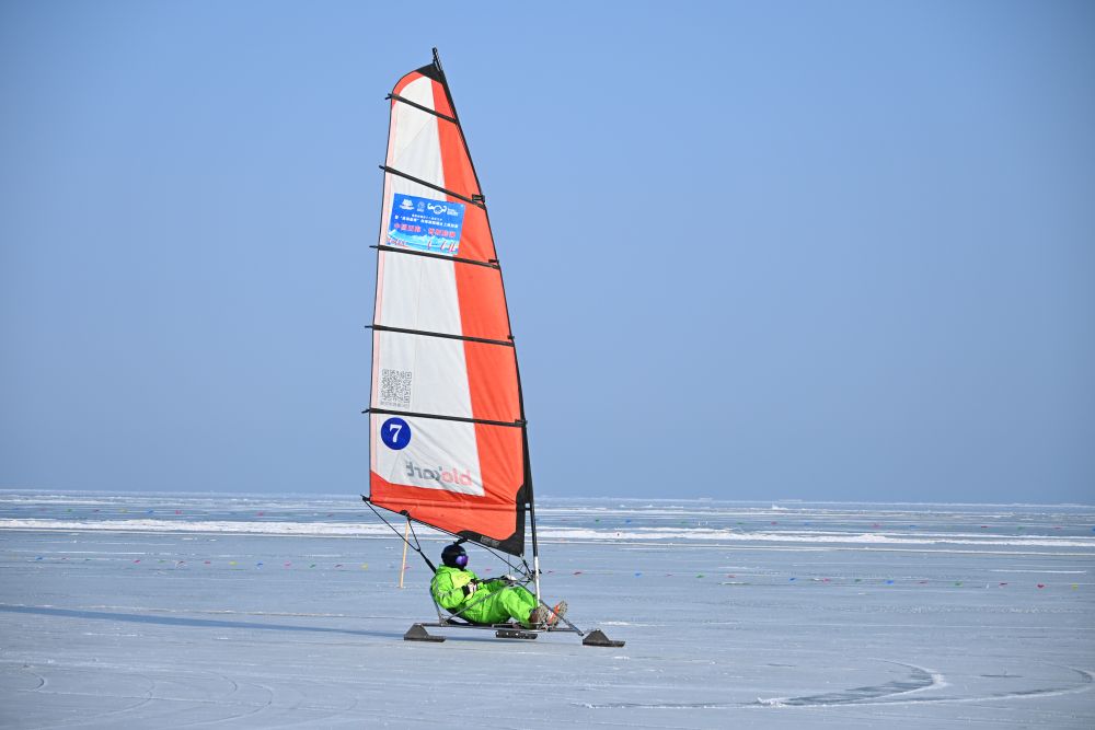 博斯腾湖冰面上 冰上帆船赛竞逐