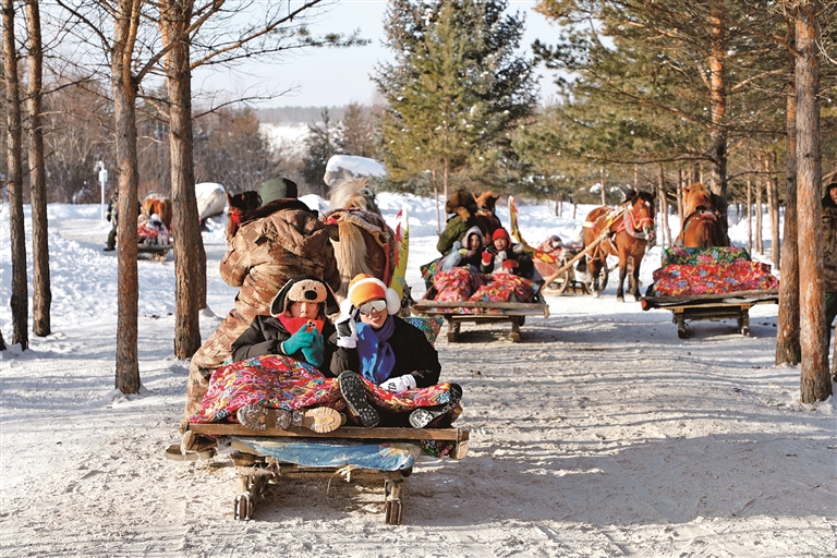 连马,也实现了“再就业”。“早先养马,是为了上山拉木头,林场禁伐以后,养马一度成了负担。”北极村党支部书记高威告诉记者,后来想体验马拉爬犁的游客越来越多,村里干脆成立马拉爬犁协会,“现在搁家拉游客,连溜达带玩,一个冬天就能收入五万多元”。