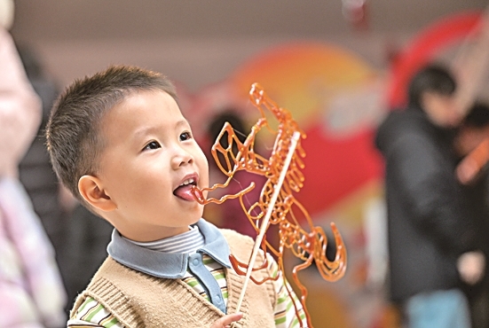 小朋友在吃糖画。新华社发