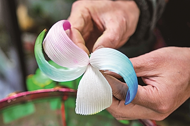 手艺人在制作荷花灯。新华社发