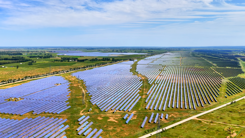 定边县连片光伏板铺展成绿色能源画卷。陈煜摄