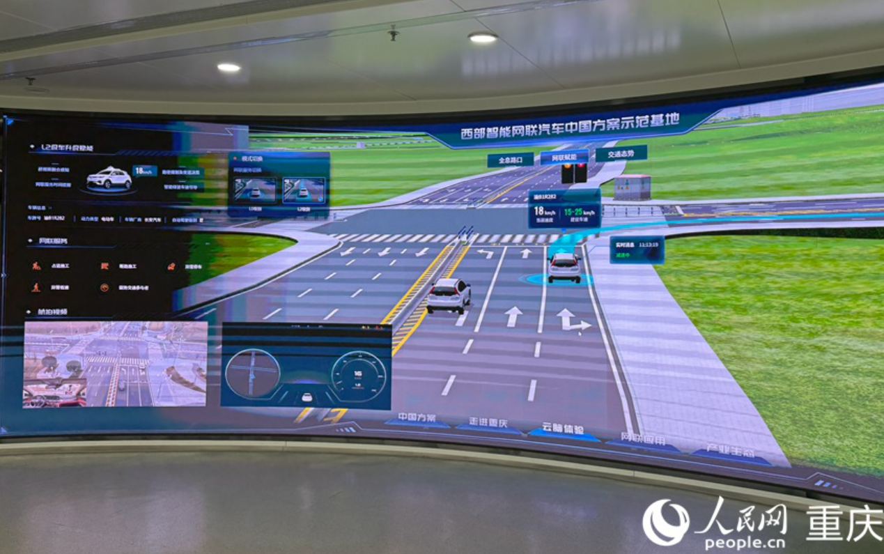 “刚才的情况是路侧传感器精准识别,立即将数据回传云端,云端平台完成计算并下发指令,车辆减速。”西部(重庆)科学城智能网联汽车云控技术中心副主任常雪阳指着实时监控屏幕介绍。