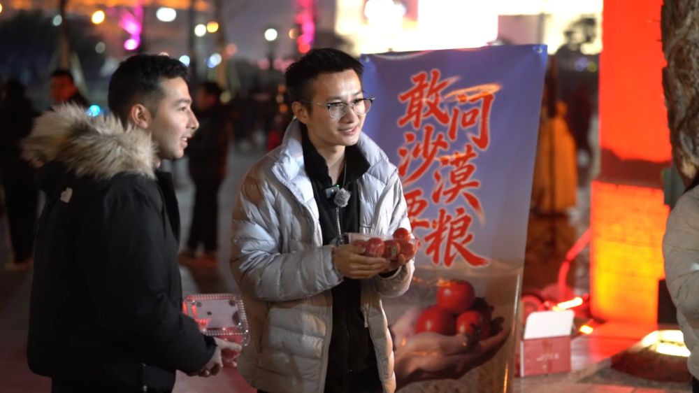 今年28岁的陈镇,消瘦精干,一副黑边眼镜,说话的时候一紧张就会握着拳头撑着下巴,像是给自己打气。很难想象一副书生气的他怎么有勇气跨越近4000公里,从塔克拉玛干沙漠边缘来到西安大唐不夜城的闹市里推广农产品。