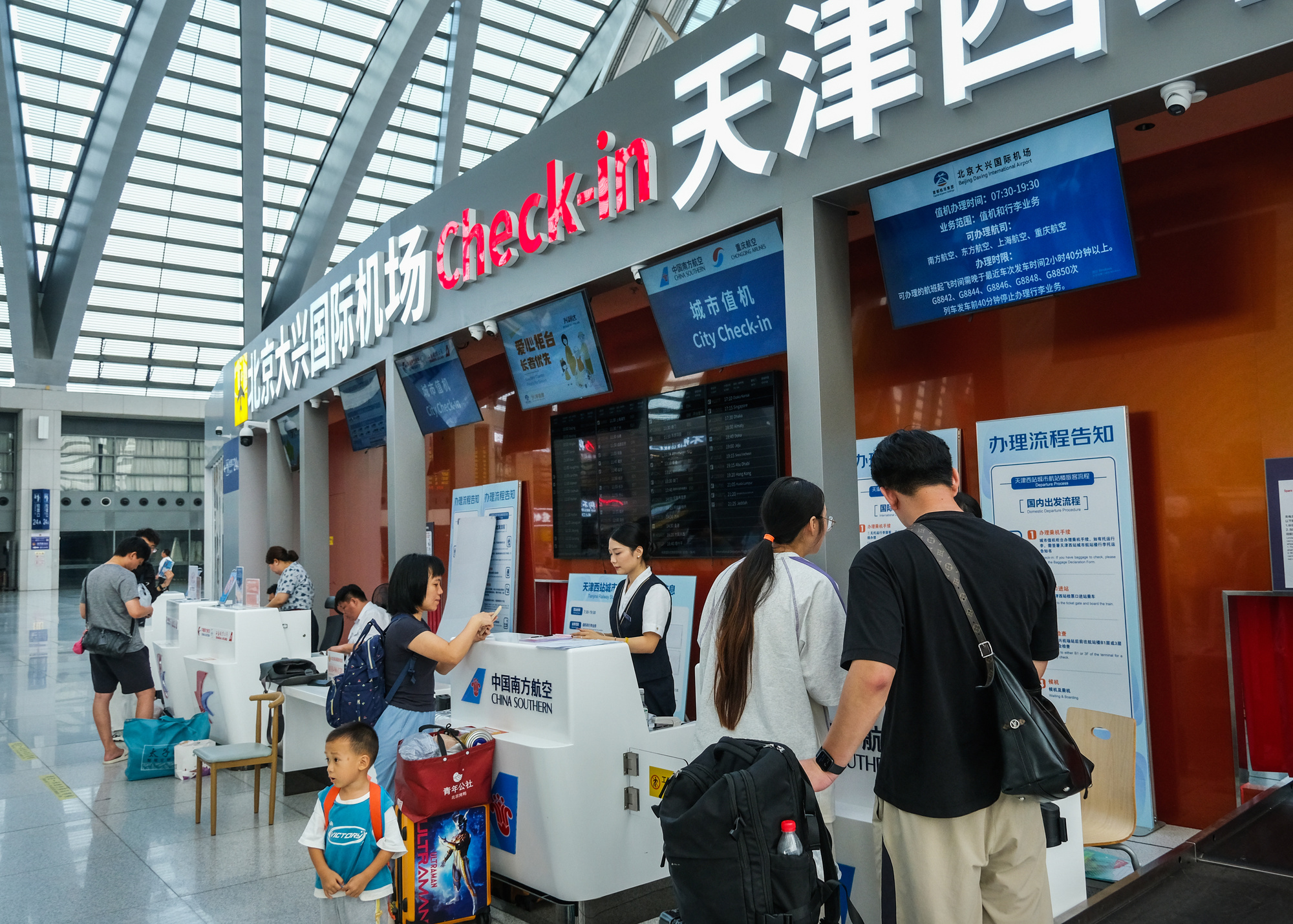 轨道的延伸,正重塑着千万人的生活半径,更催生出“空铁联运”的无缝衔接新体验。在天津西站候车大厅内,北京大兴国际机场天津西站城市航站楼的6个智慧化值机柜台前不时有旅客驻足,旅客只需刷身份证即可自助办理南方航空、东方航空等12家航空公司的国内航班值机手续。“我早上坐高铁从保定到天津西站,直接在西站办好航班值机,再转津兴城际去大兴机场乘机旅游,太省心了。”准备外出旅游的王女士的体验,正是这座航站楼便民成效的生动写照。