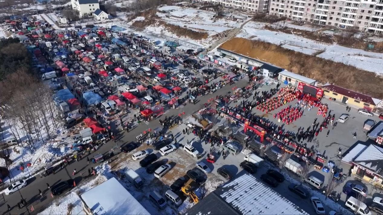 坐落于辽宁省沈阳市浑南区的上水泉生态大集,每周三、周六开集。这几天,来这里赶集的人明显多了起来。东北人喜欢的冻梨、冻柿子、粘豆包,这里任挑任选;团圆餐桌上的烤猪蹄、溜达鸡、香煎鲅鱼,这里给您一站备齐;炒榛子、大馒头、蒸包子,那也必须都是冒着热气,刚刚出锅。烟火旺,锅气香,年味十足的大集上,一片喜庆红火。