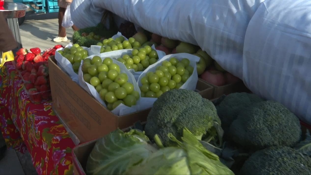 黄瓜、茄子、芸豆、辣椒、角瓜、蒜苗、豇豆、芹菜、韭菜、菠菜……赵永久的蔬菜摊上,40多种蔬菜紧挨在一起,看得人眼花缭乱。过去东北冬天的餐桌上只有白菜、萝卜、土豆,现在各种新鲜蔬菜和水果琳琅满目,一样称一点,就是满满一大包。