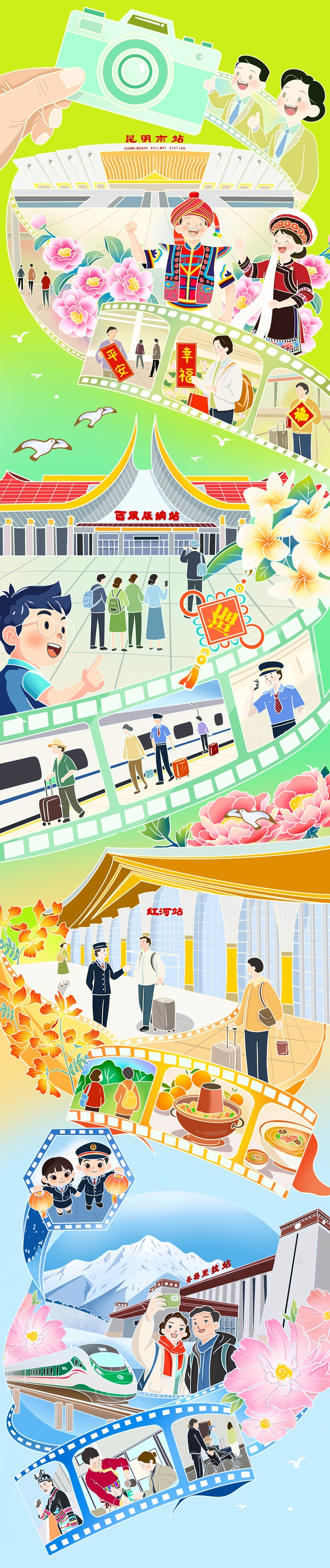四季流转皆是景,一路欢歌赴团圆。云南铁路以地理之美、人文之韵、服务之暖,让春运不仅是归家之路,更是遇见云南的美好之旅。(文字/向攀漫画/栗也茹编辑/杨宇鑫)