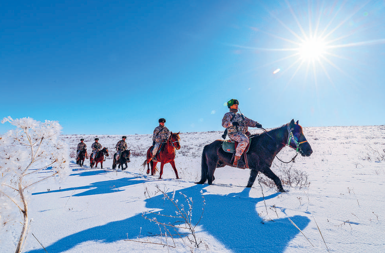 近日,新疆军区某边防连官兵骑马执行巡逻任务。付 洋摄