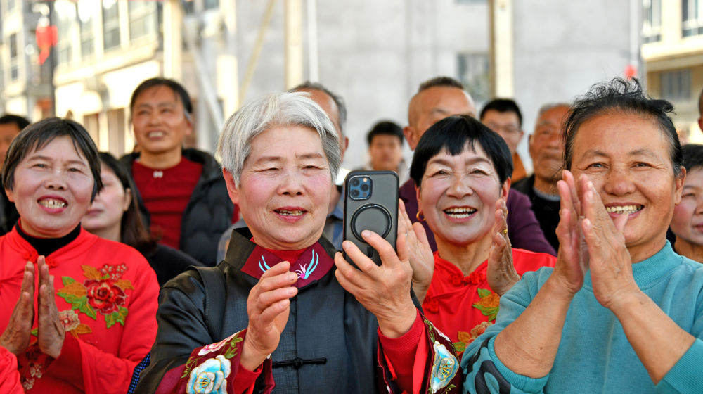 ↑ 2月15日,村民在浙江省台州市仙居县下各镇溪上村观看“村晚”表演。新华社发(王华斌摄)