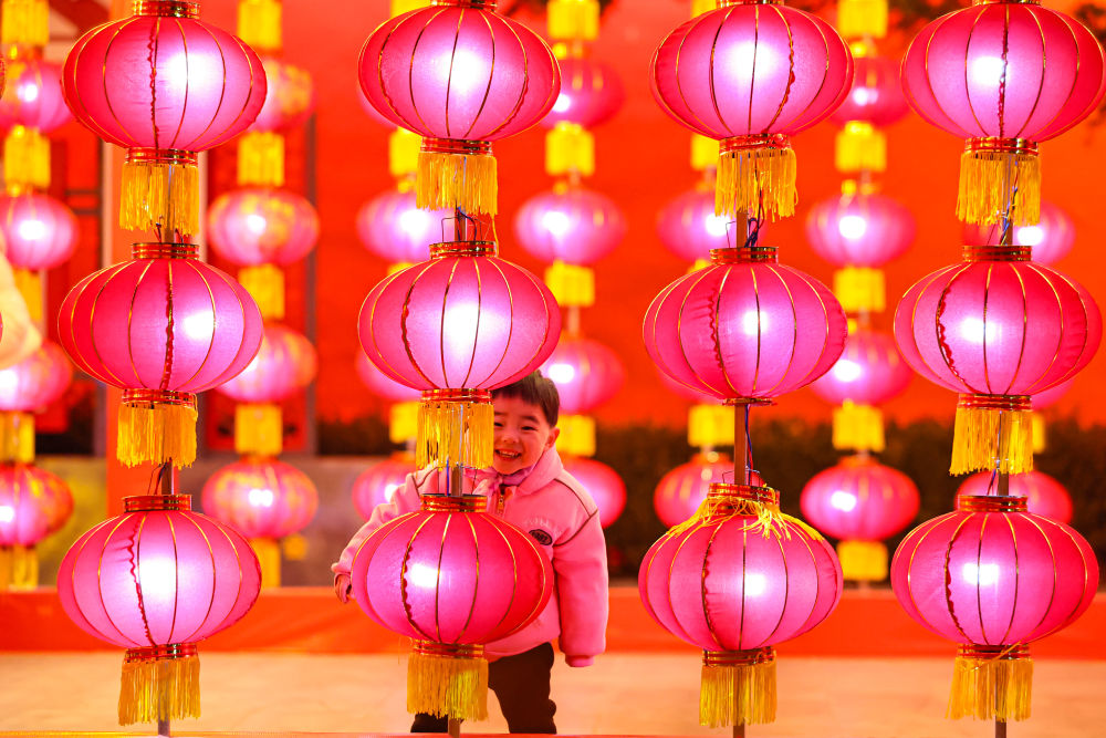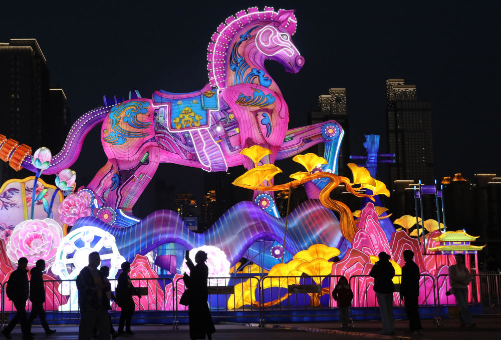 ↑ 2月13日,市民在甘肃省静宁县成纪文化广场赏花灯。新华社发(侯崇慧 摄)