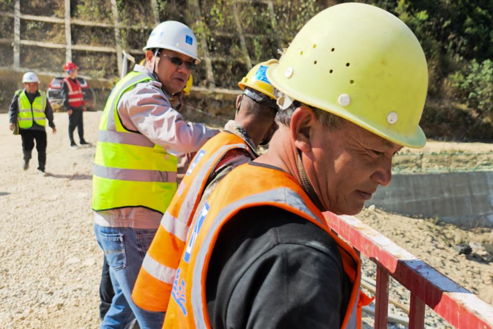第三难,是遥远的距离。这里地处祖国边陲,属于物流末梢,沿着弯弯绕绕的山路,将机械设备、重型材料运到工地,本身就是一件难事。其间,项目还遭遇了疫情考验,国门上的防控压力直接传导到项目部,好在提前布局备货,工人们也选择就地过年。