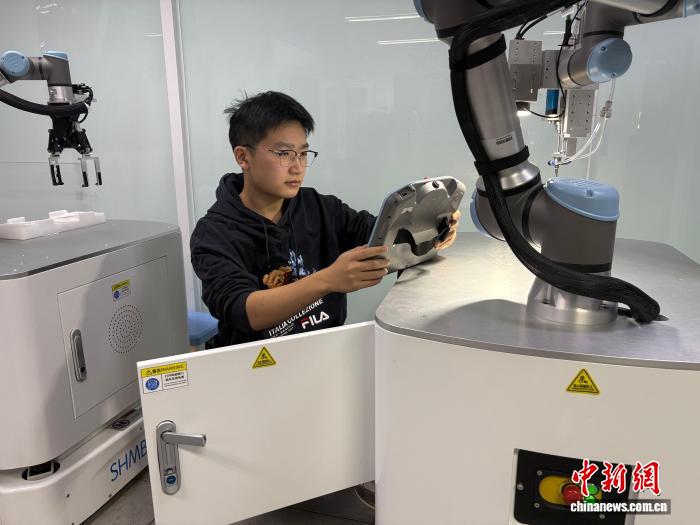 2026年1月,来自台湾新北市的陈光在北京邮电大学做智能机器人实验。(受访者供图)