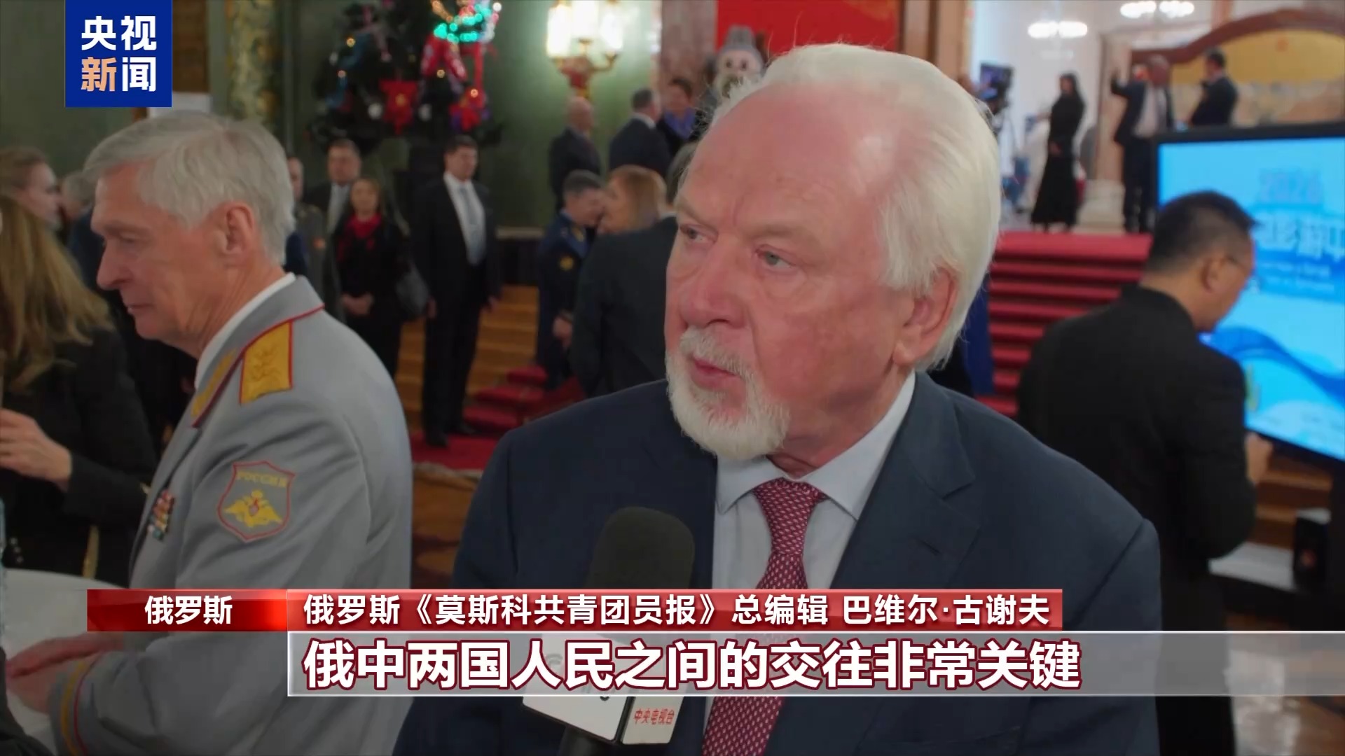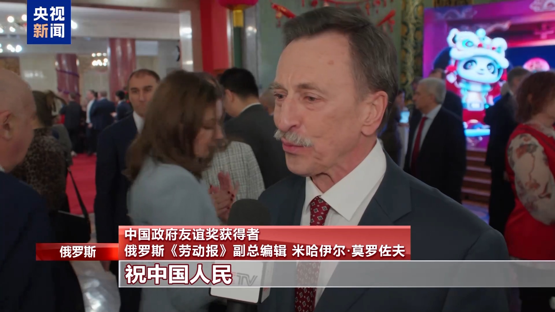 俄罗斯《莫斯科共青团员报》总编辑 巴维尔·古谢夫:俄中两国人民之间的交往非常关键。如今越来越多俄罗斯民众赴华旅游、进行商务洽谈、拓展合作,新闻工作者也不例外。我谨在此祝贺大家春节快乐。