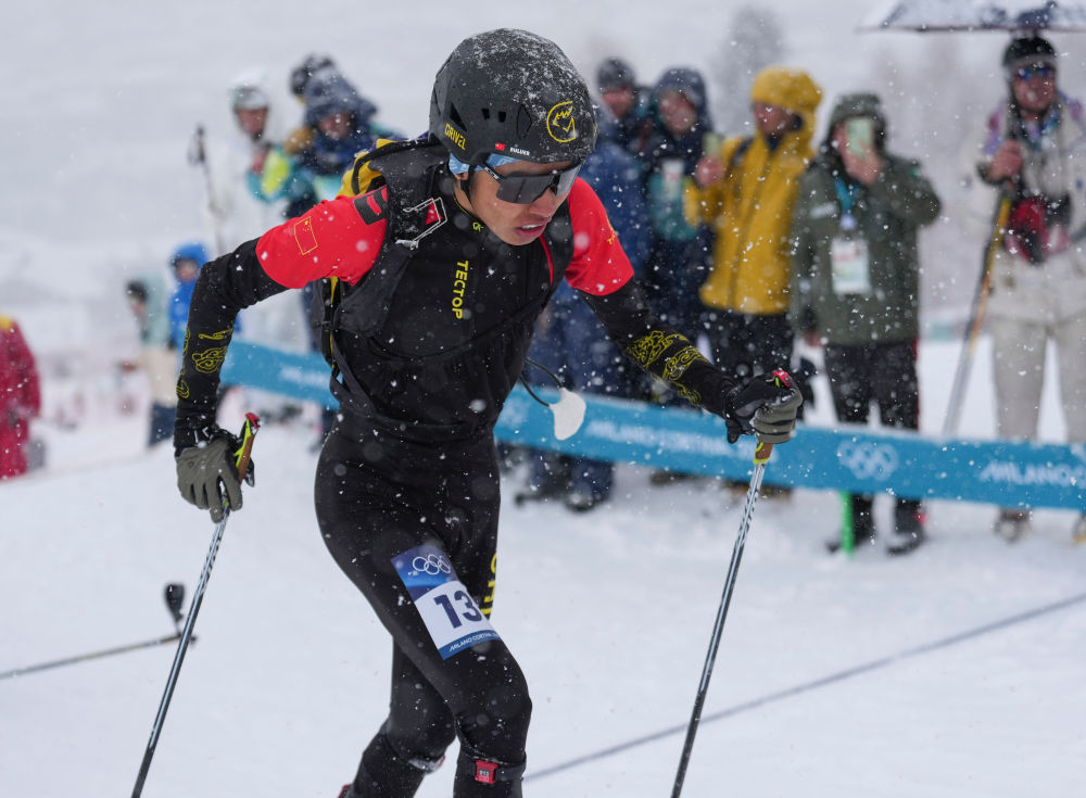2026年2月21日,次旦玉珍在米兰-科尔蒂纳冬奥会滑雪登山混合接力比赛中。新华社记者 胡虎虎 摄