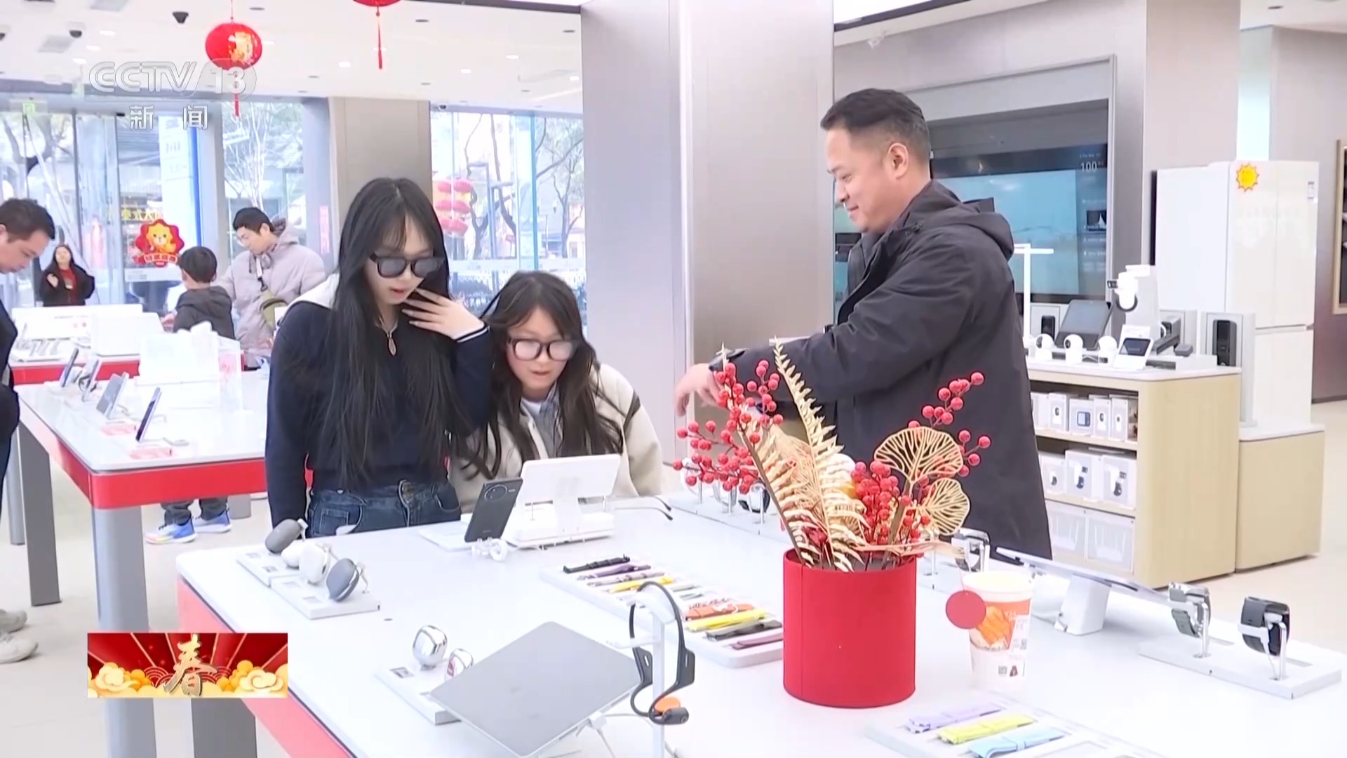 今年春节假期,江苏举办“乐购新春”春节特别活动,为消费者送上了真金白银的“新春礼包”。在以旧换新政策加持下,手机依旧是热门年货;而智能眼镜、智能小家电、智能机器人玩具等科技年货,也获得不少消费者的青睐。首次被纳入国补政策的智能眼镜吸引了众多顾客前来体验。