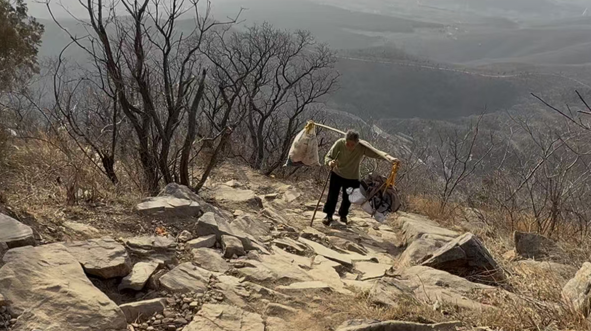 嵩山是世界物质文化遗产。为保护山体环境,这里的交通至今全靠步行。随着海拔抬升,石阶彻底消失,这段山路没有规整的石板或砖块铺就,只有嵌在泥土中凹凸不平的石块,走起路来格外扎脚。