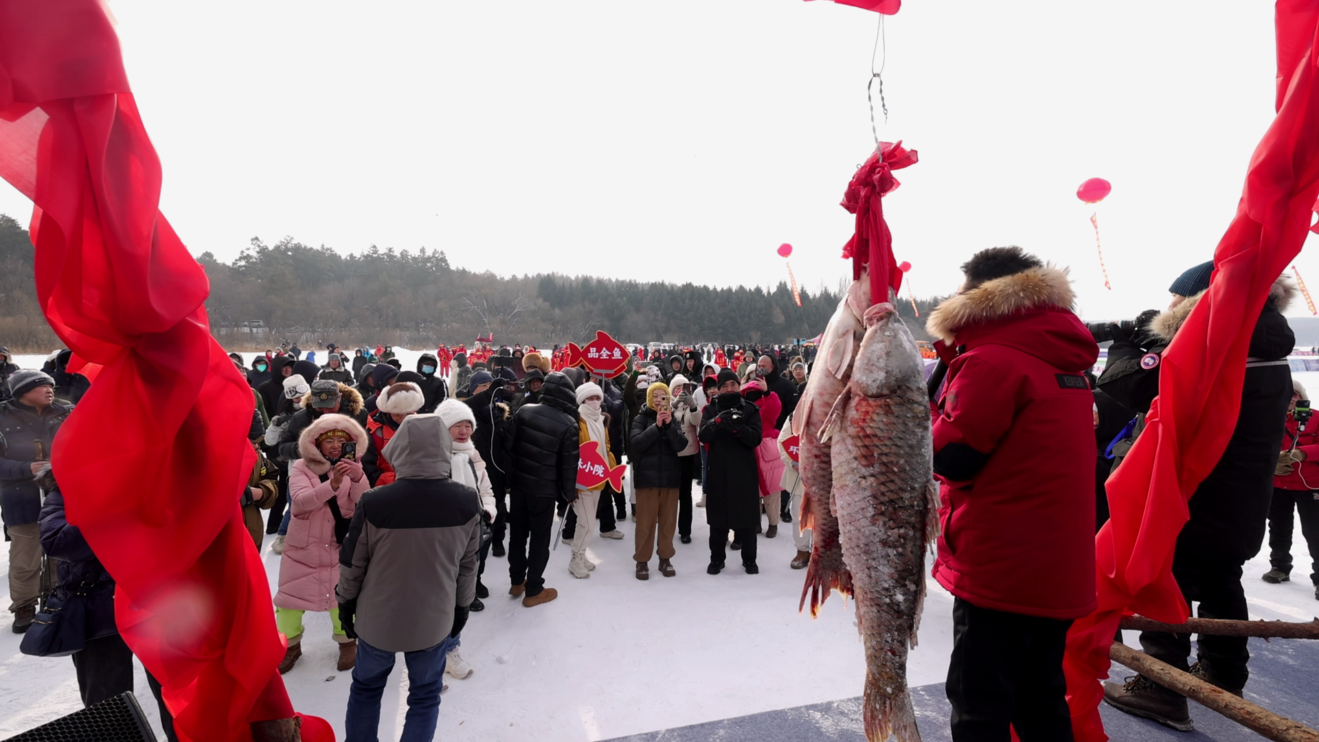 长春净月潭头鱼拍卖,吸引众多游客前来“打卡”(央广网记者 张学龙 摄)