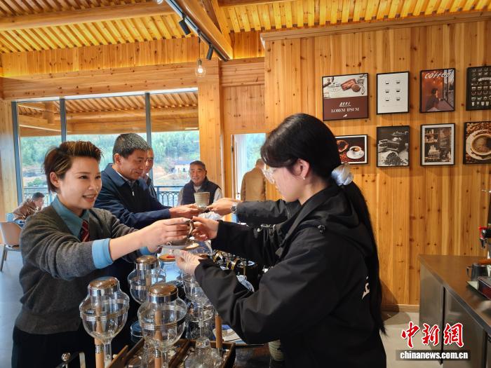 24日,走进佳垅村茶园环绕的咖啡屋中,茶清香、咖啡醇香、面包烘焙焦香交织。吴允杰 摄