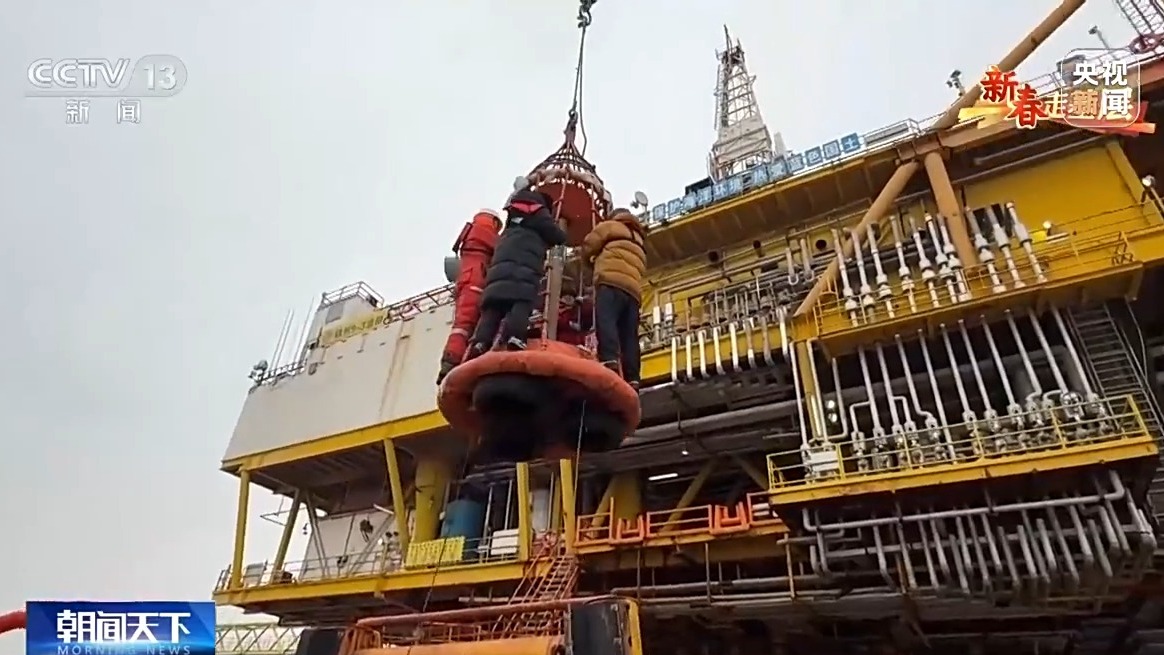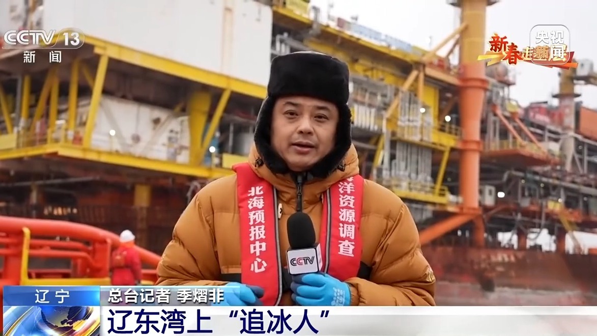 总台记者 季熠非:在我的身后是位于辽东湾腹地的中国海油锦州93油田,这里是我国纬度最高、地理位置最北的海上油田。每年隆冬时节,这里的油气开采平台都会被厚重的海冰所包围。