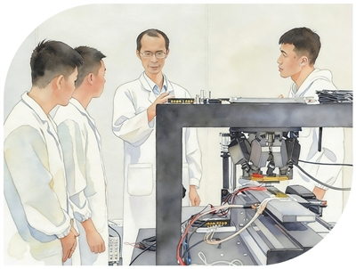 全国政协委员、重庆理工大学校长刘小康(右二)指导学生做实验。