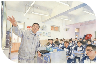在天津市汉沽中专,全国人大代表、中石化第四建设有限公司工匠学院焊接教练张振连(左一)为学生们授课。