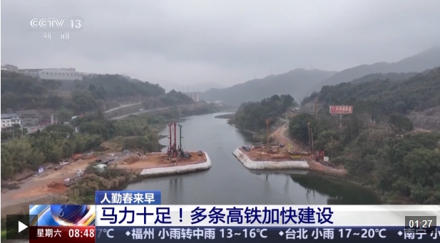 在新建温福高铁的建设现场,全线700多名建设者正以饱满的干劲投身施工一线。在位于福建福安的全线关键控制性工程——赛江特大桥施工现场,工人们正全力攻坚水中墩施工,多台旋挖机同步向水下花岗岩掘进。