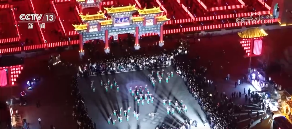 九曲灯阵占地面积近20亩,外部方正、内部曲折,宛如“九曲十八弯”的黄河。游客们跟随奏乐队伍,进入九宫九格的迷宫,穿行全长2.4公里的回廊,依次走过寓意着“福禄寿喜”的九个曲阵。两边的灯笼上悬挂着百家姓和十二生肖,游客们可以一边转九曲,一边寻找印有自己姓氏和属相的红灯笼,沉浸式体验元宵佳节的喜庆氛围。除了九曲灯阵,社火展演、主题光影秀、无人机烟花秀也轮番上演。据了解,该活动将一直持续到正月十五。