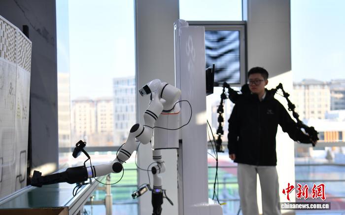 1月8日,河北雄安新区中国雄安集团数字城市科技有限公司具身智能训练场内,机器人在进行物流装配应用场景训练。 中新社记者 韩冰 摄