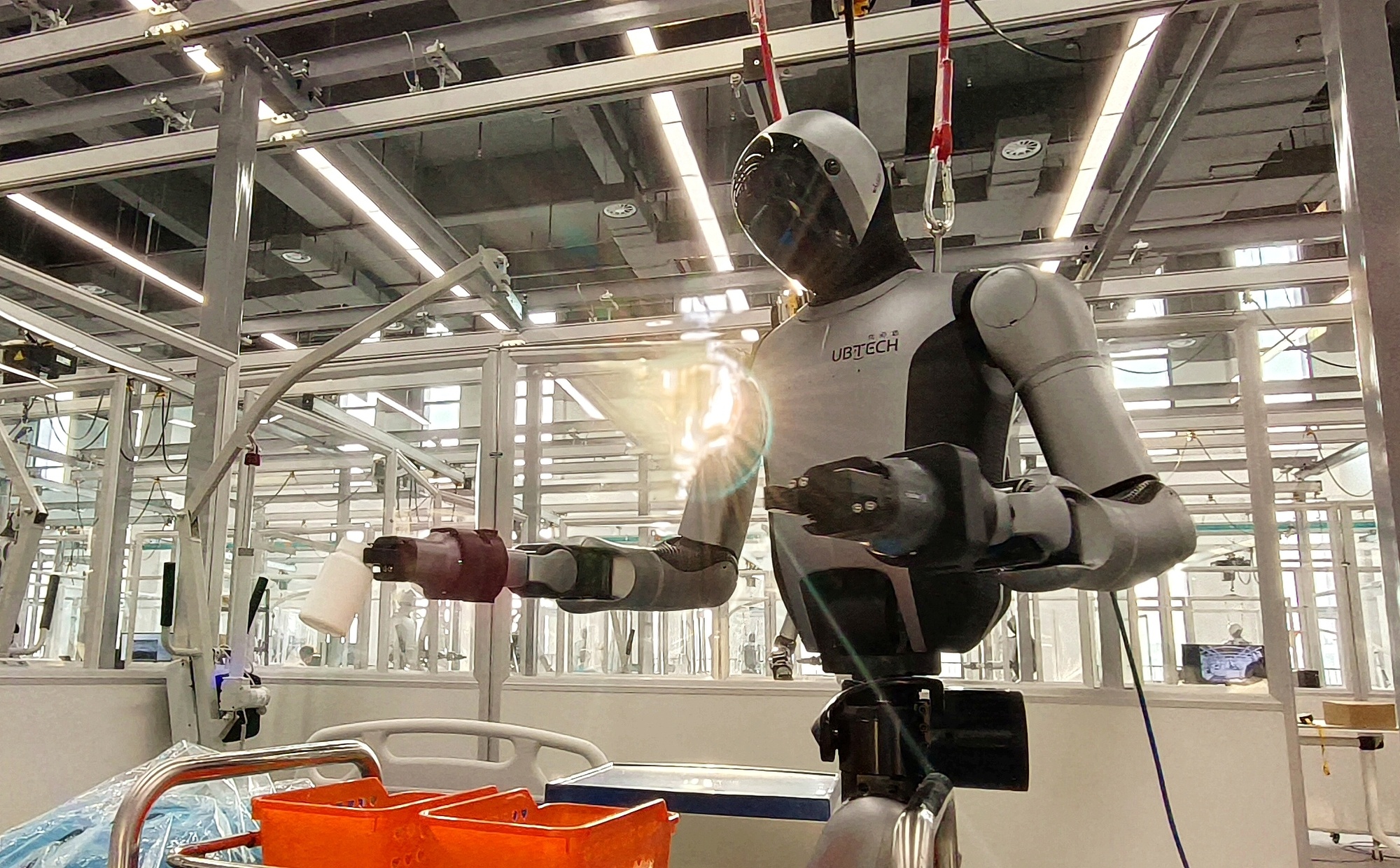 广西防城港:机器人搬运箱子