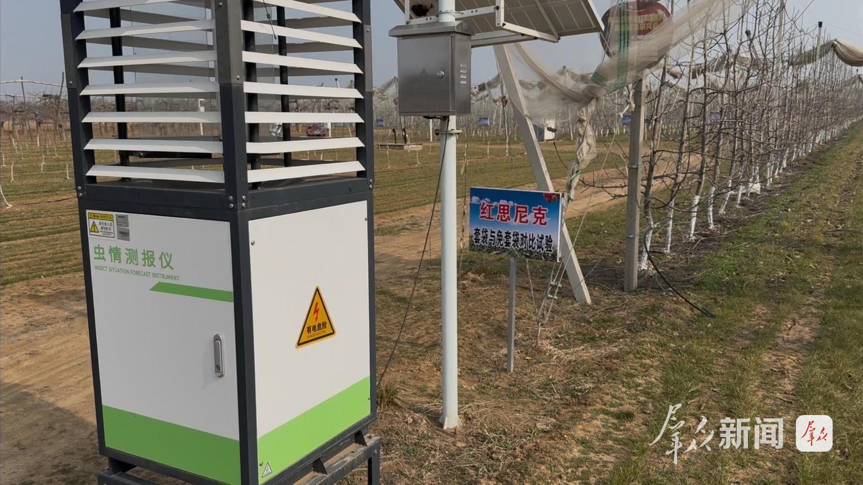 3月12日,延安市黄陵县隆坊镇古路村的苹果试验示范基地里,虫情监测仪、土壤墒情传感器、温湿度监测器立在果树间。技术人员穿行其中,手机屏幕上实时显示着果园的各项数据。