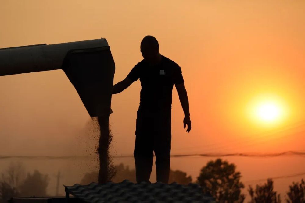 河南省宝丰县闹店镇东军营村村民在收获小麦。新华社记者 李嘉南 摄