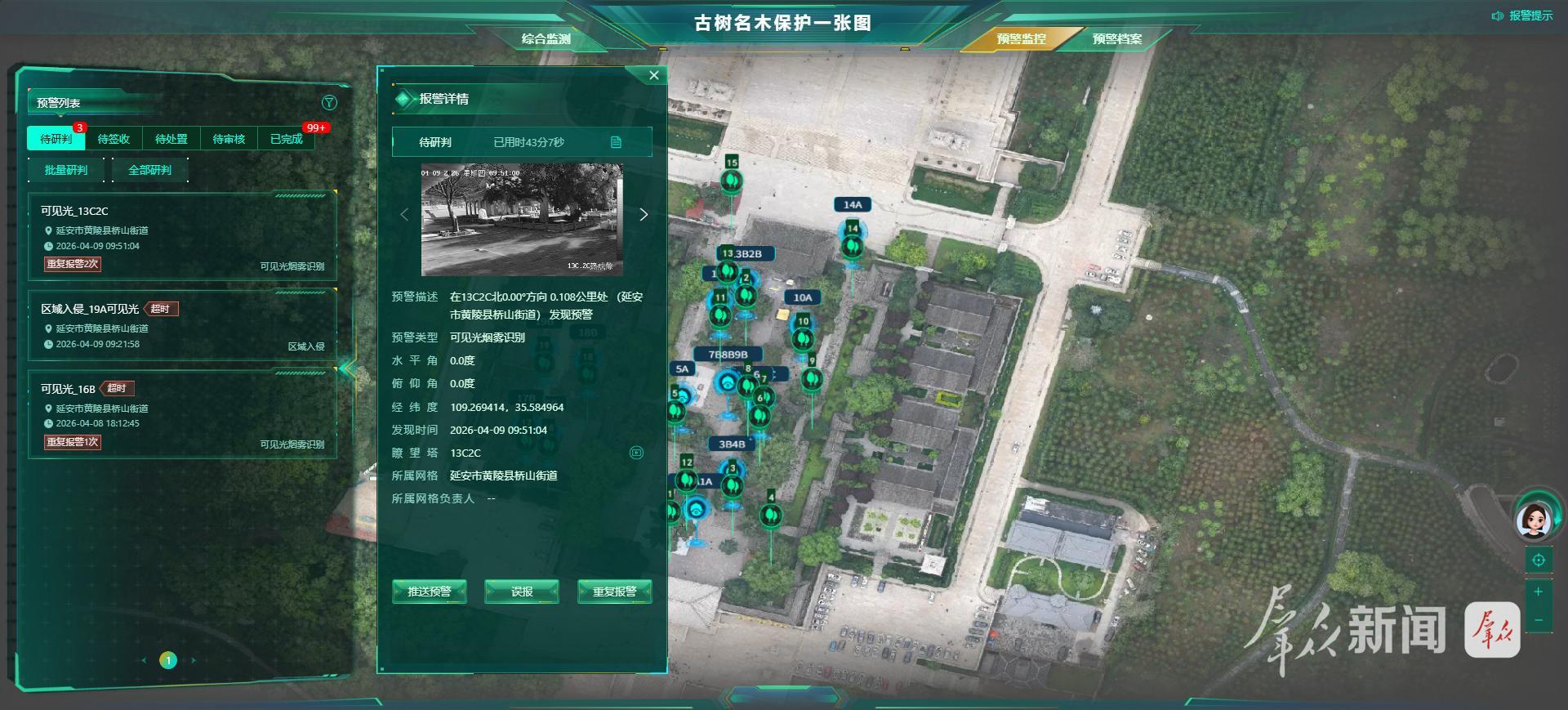 从5000年树龄的黄帝手植柏,到3000多亩古柏林,数字化正为这些“有生命的文物”筑牢保护屏障。