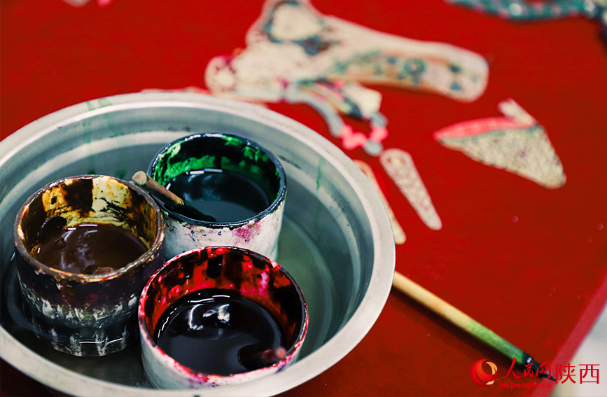 皮影雕好后,经平整、磨平、打光后进行着色,再经过脱水、固色、阴干、压平,就制成了半透明的影偶。陈氏老腔皮影影偶人物由头、胸、腰、两个上臂、两个下臂、两条腿、两只手等十一部分组成,雕制时各部件分开制作,完成后再将各部分相缀。