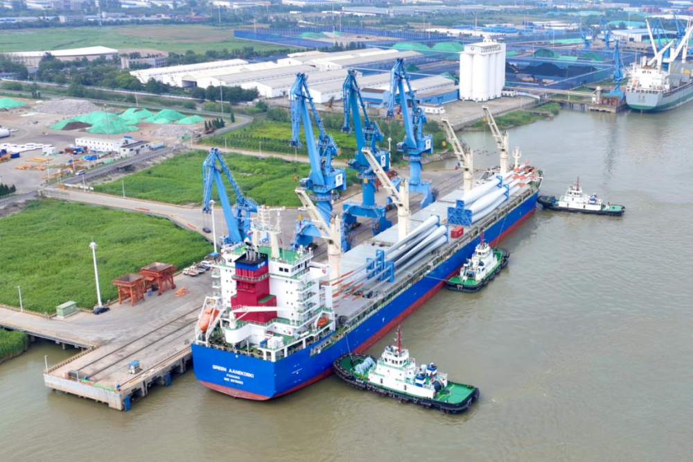 扬州港,地处长江与京杭大运河黄金交汇点,既是内河航运的枢纽,也是河江海联运的门户。这座港口的崛起,正是长三角港产融合发展的生动缩影。依托周边新能源产业集群,扬州港已成为国内领先的风电设备综合出口基地,成为我国绿色能源“走出去”的重要通道。