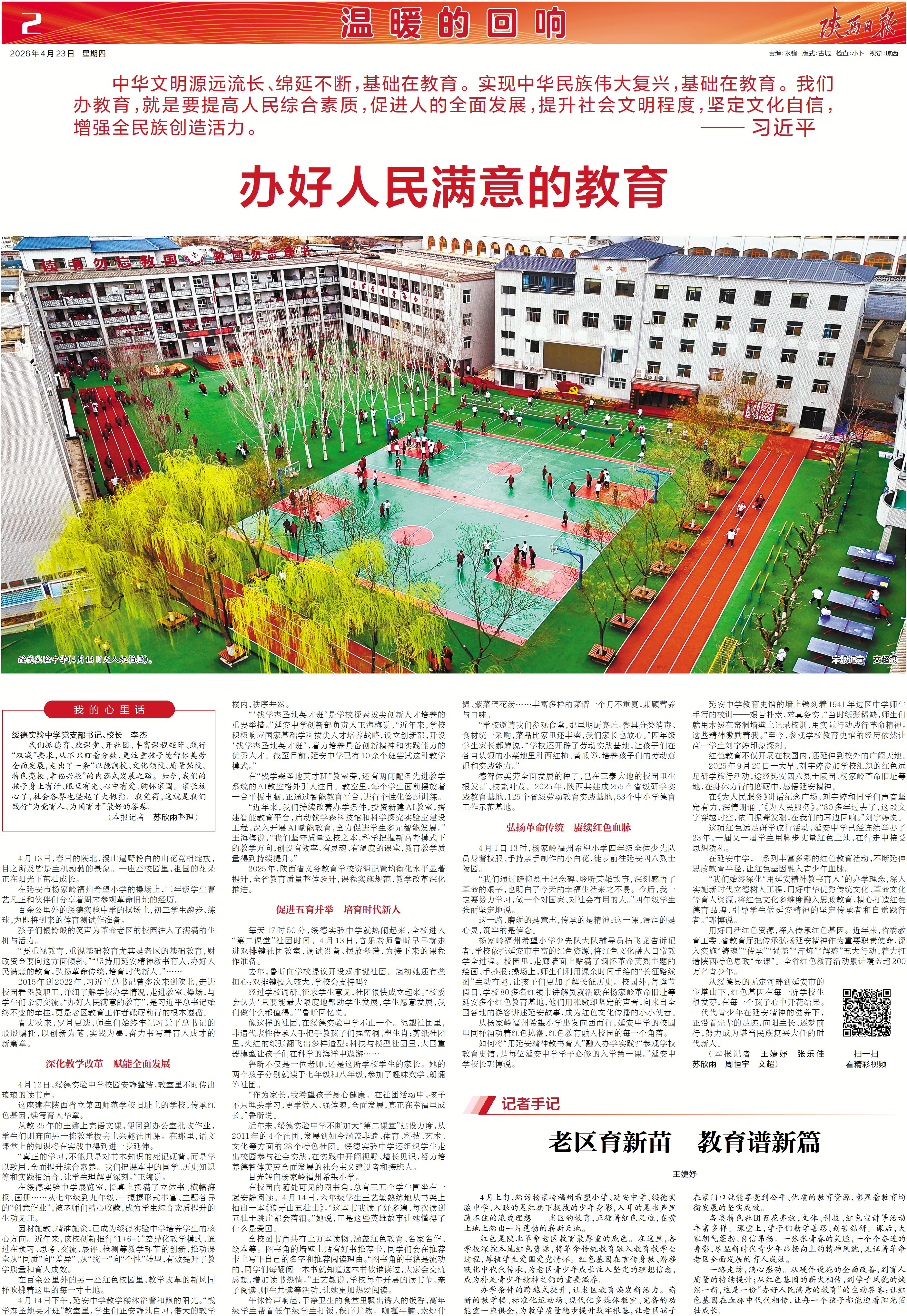 春去秋来,岁月更迭,学校师生们始终牢记总书记的殷殷嘱托,以创新为笔、实践为墨,奋力书写着育人成才的新篇章。